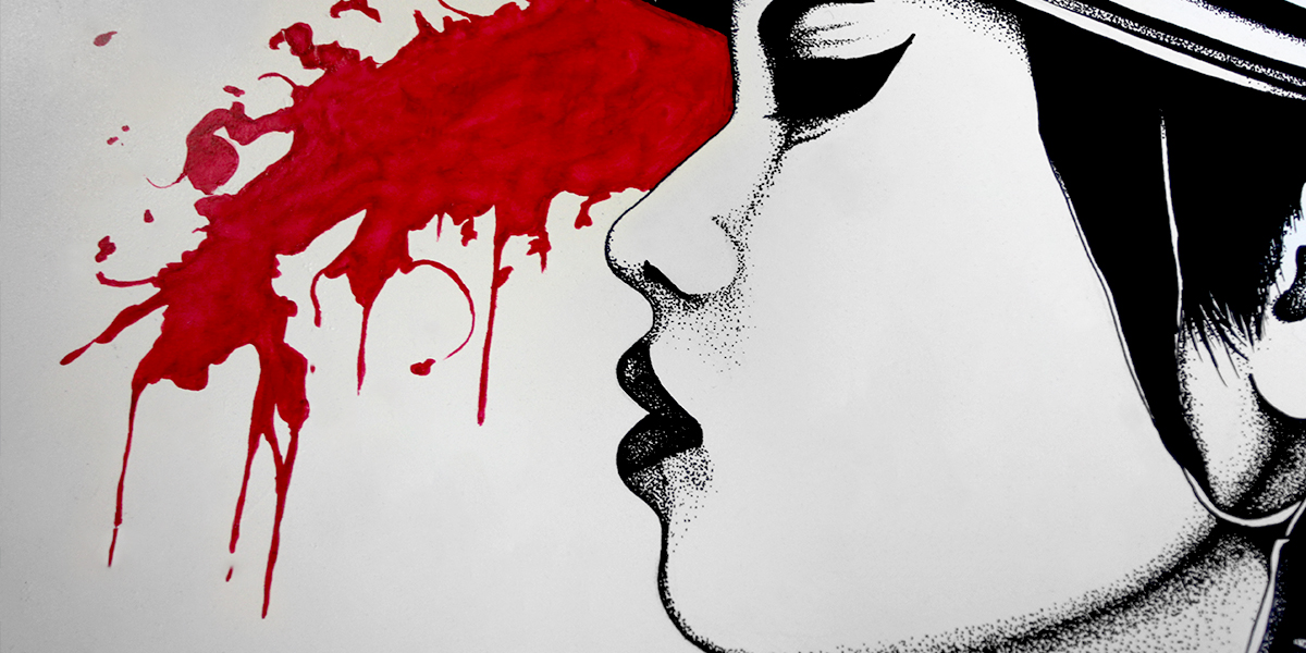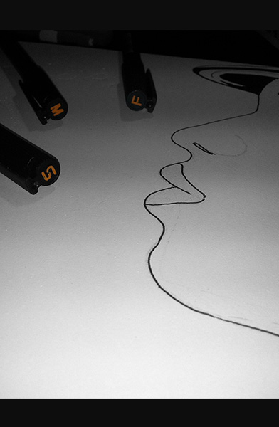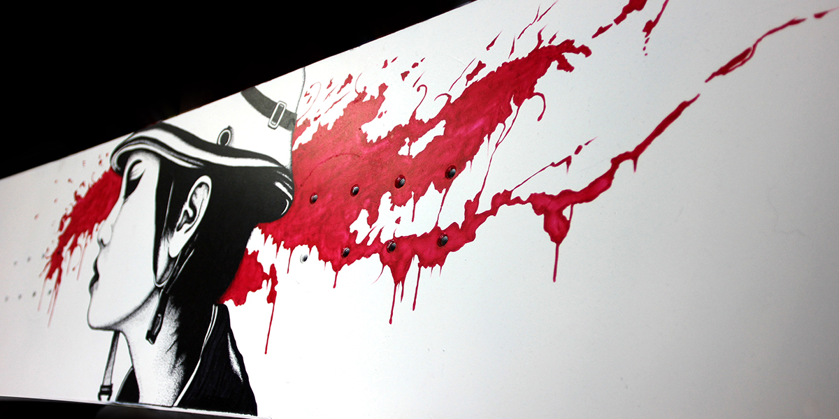 - Illustration réalisée au marker sur une vieille planche de snowboard, préalablement poncée, mastiquée et repeinte. -
